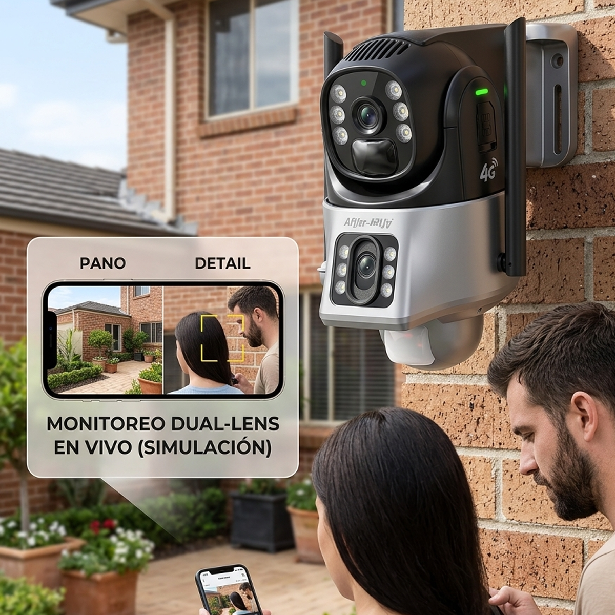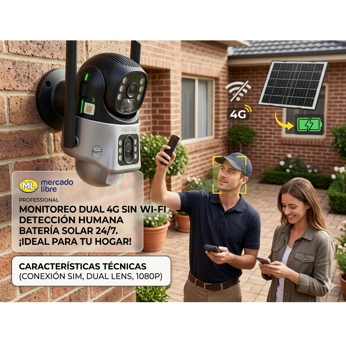 Instalá esta cámara donde quieras sin necesidad de electricidad ni WiFi. Gracias a su panel solar y conexión con chip, podés monitorear en tiempo real desde tu celular estés donde estés.