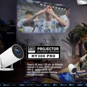 Además de todas estas funcionalidades, el proyector Hy300 tiene un diseño compacto y portátil, lo que facilita su transporte y configuración en cualquier lugar. Transforma cualquier entorno en una sala de cine en cuestión de segundos. El control remoto y la interfaz intuitivos hacen que navegar y personalizar su experiencia de proyección sea simple y práctico.